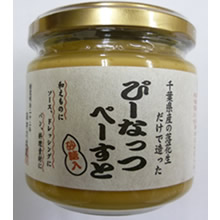 | 千葉県産の落花生のみを使用。黒御影石の臼が摺りつぶすとき発生する熱を吸収するので豊かな風味や成分を損ないません。砂糖入りなのでパンなどに最適です。